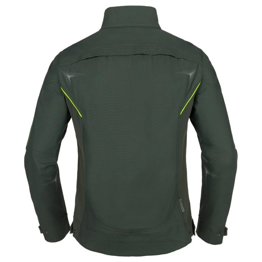 Die Herren-Arbeitsbluse ist aus dem speziell gewebten Amalytton®-Baumwoll-Stretch-Material gefertigt. Es hat eine hervorragende Atmungsaktivität, Festigkeit und ist gleichzeitig sehr glatt und weich im Griff. Es hat auch ein geringeres Gewicht, was die Bluse sehr angenehm zu tragen macht. Belastete Teile sind aus dem funktionalen Material Tabiflex® gefertigt, das extrem widerstandsfähig gegen Verschleiß und Risse ist, aber auch flexibel, was maximale Bewegungsfreiheit bei fast jeder Arbeit ermöglicht. Die Bluse ist in einem modernen ergonomischen 3D Slim-Fit-Schnitt genäht, der Bewegungsfreiheit ermöglicht und gleichzeitig die Silhouette betont, was sie gut aussehen lässt. Sie hat einen Stehkragen und mehrere praktische Taschen. Sie wird mit einem Reißverschluss geschlossen, der einen Kinnschutz hat. Die Weite der Ärmel und des unteren Saumes der Bluse kann mit Druckknöpfen angepasst werden. Sie hat 1 Brusttasche mit Reißverschluss, 1 Tasche mit Reißverschluss am linken Ärmel und 2 seitliche Taschen mit Reißverschluss. Auf der Rückseite befindet sich eine funktionale Belüftung. Belastete Teile sind für eine höhere Beständigkeit dreifach vernäht. Die Bluse ist auch mit dynamischen reflektierenden 3D-Drucken und High-Vis-Zubehör ausgestattet, die für eine bessere Sichtbarkeit sorgen.