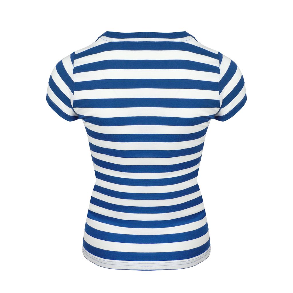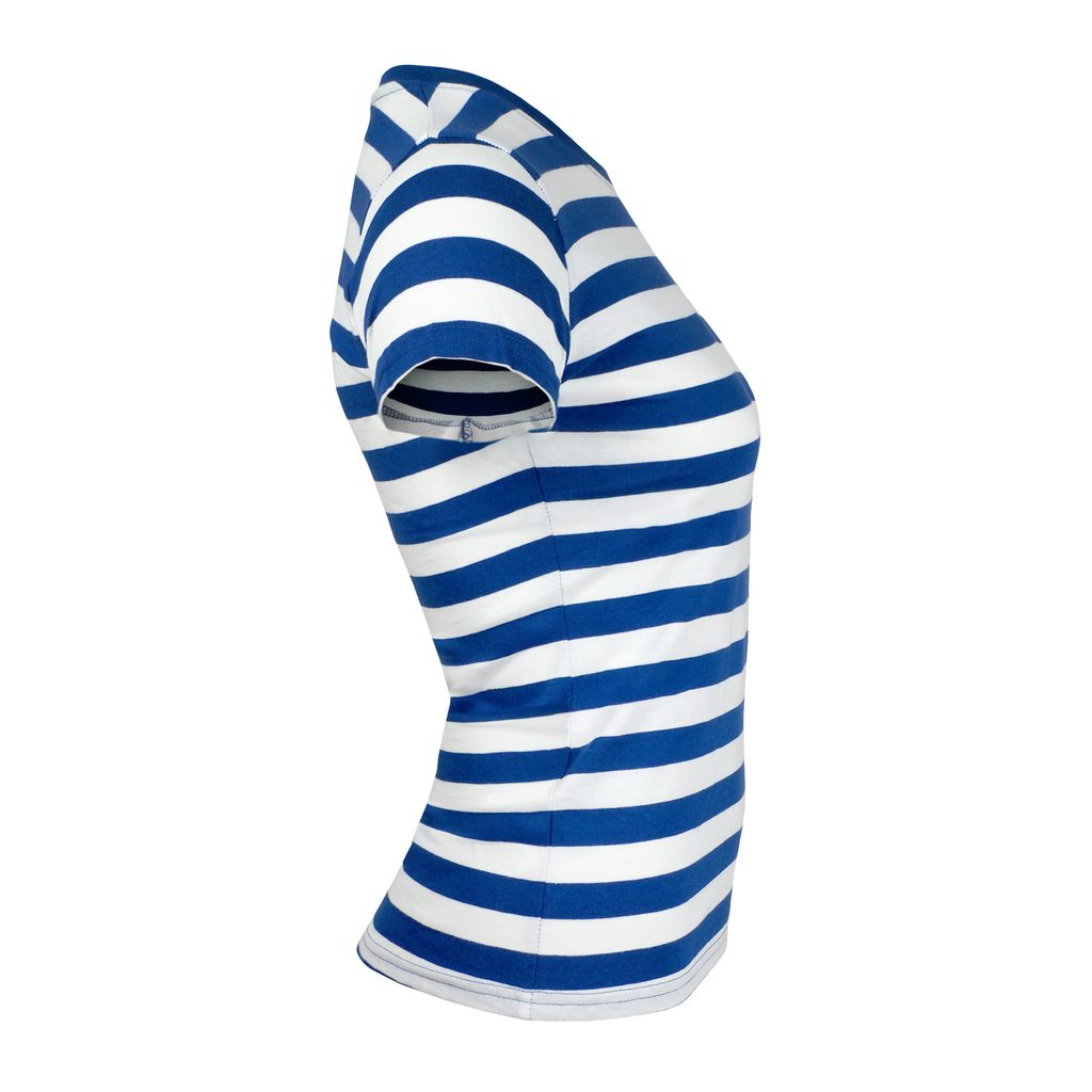 Bequemes gestreiftes Damen T-Shirt aus hochwertiger gekämmter Bio-Baumwolle. Das Material ist sehr weich, glatt und angenehm auf der Haut. Das T-Shirt hat einen klassischen Schnitt mit Seitennähten und ist leicht tailliert, um die feminine Silhouette zu betonen. Es hat einen Rundhalsausschnitt mit…