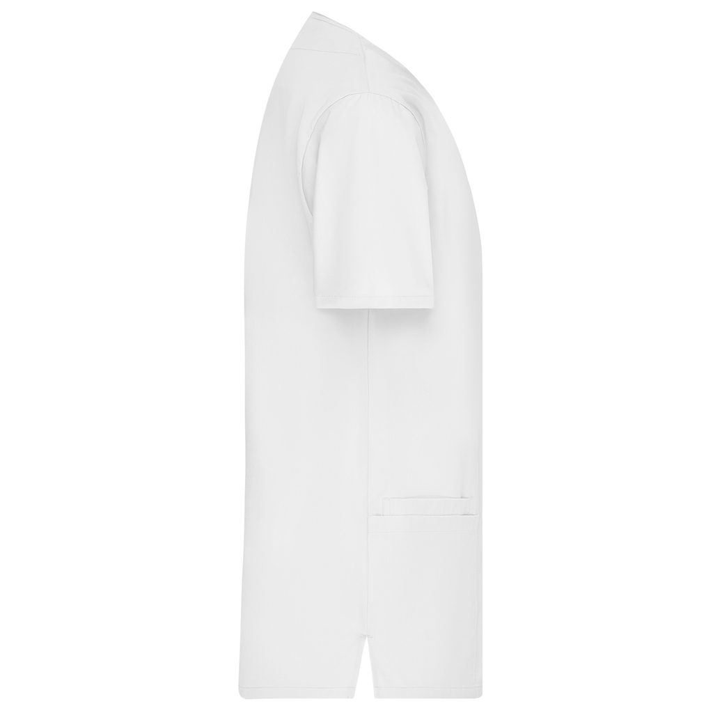 Herren Kasack aus angenehmem und strapazierfähigem Material mit V-Ausschnitt. Verfügt über 2 große und 2 kleinere Taschen an den Seiten sowie eine Brusttasche. Seitliche Schlitze ermöglichen Bewegungsfreiheit.