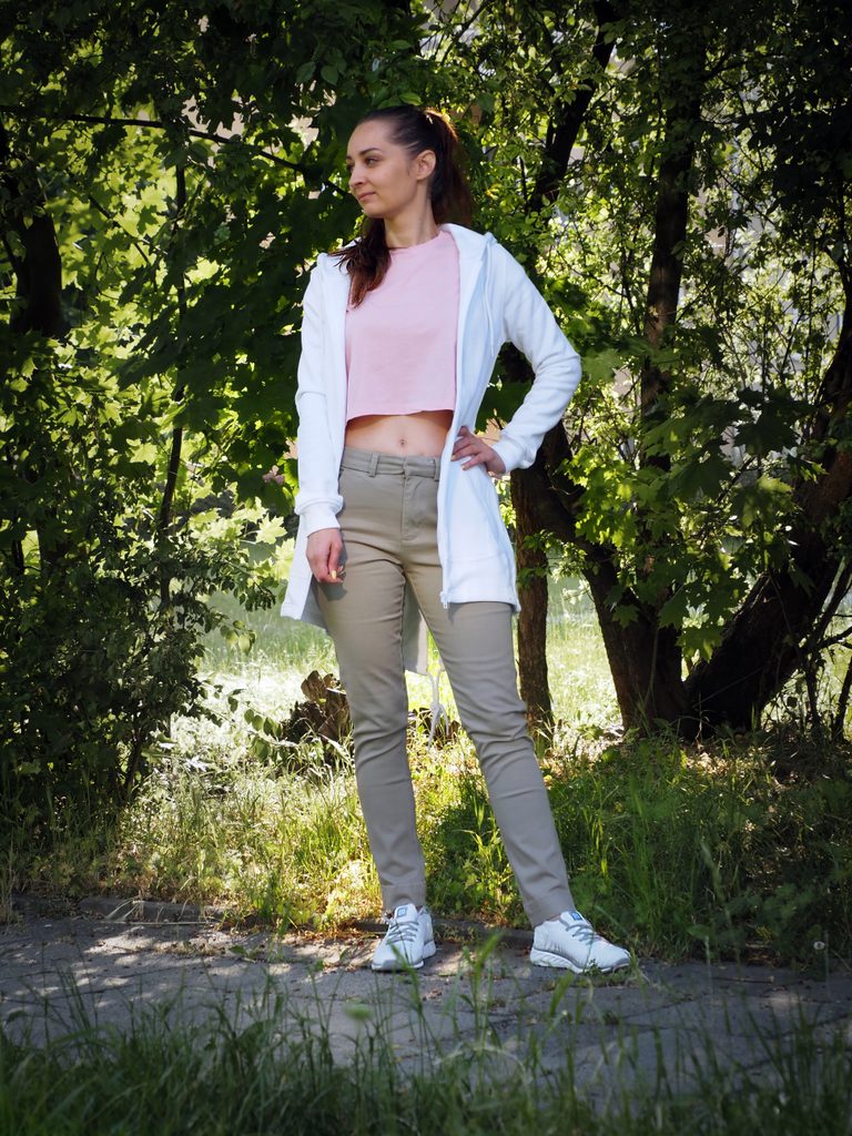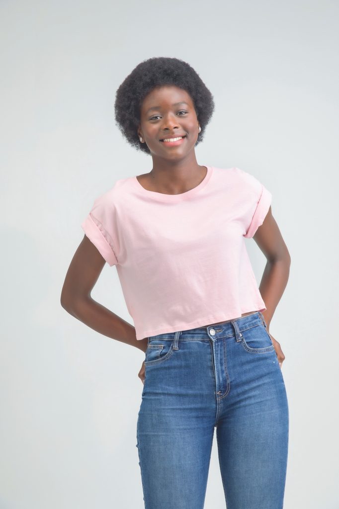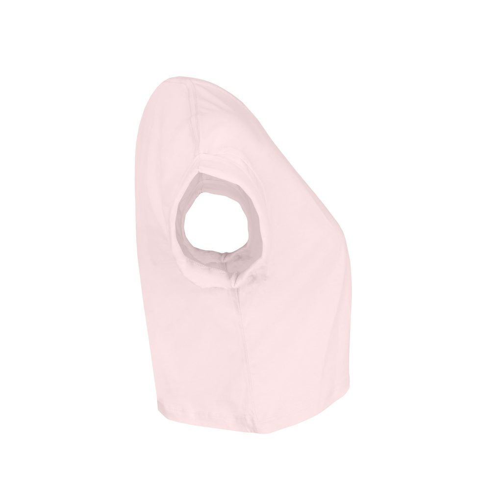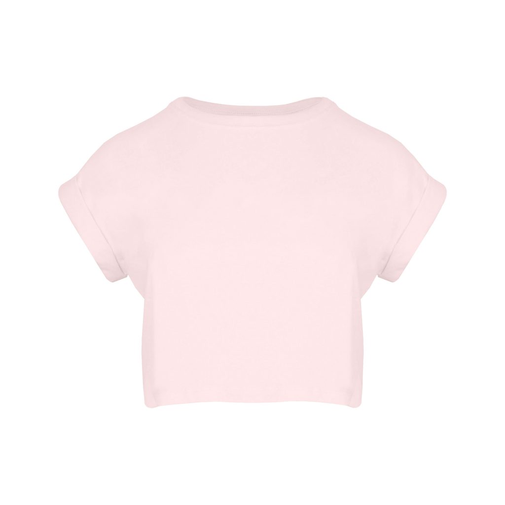 Leichtes Damen Crop-Top mit kurzen Ärmeln aus gekämmter Bio-Baumwolle. Der Schnitt ist modisch, locker und bauchfrei, mit Seitennähten. Fallende Schulterpartie mit umgeschlagenen Ärmeln. Das T-Shirt hat Doppelnaht am Saum und einen Rundhalsausschnitt mit einem schmalen Ripp-Kragen. Es hat auch ein…