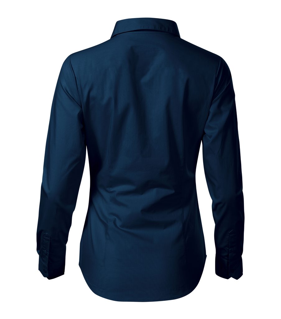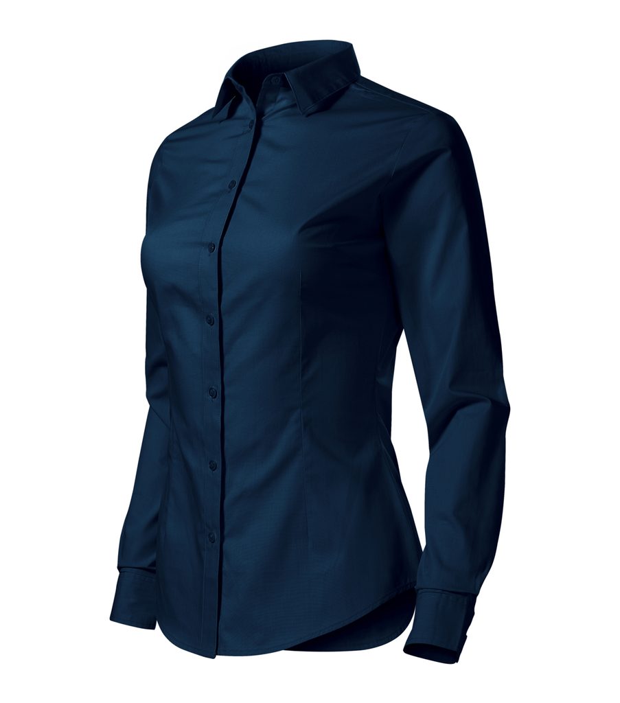 Hochwertiges Damen Langarmhemd aus angenehmem Material. Das Hemd ist klassisch geschnitten, mit Seitennähten. Es sitzt dank der Abnäher an der Taille und Brust und des geformten unterer Rands besser am Körper. Lange Ärmel mit schrägen 2-Knopf-Manschetten, Vorderseite mit einer Knopfleiste…