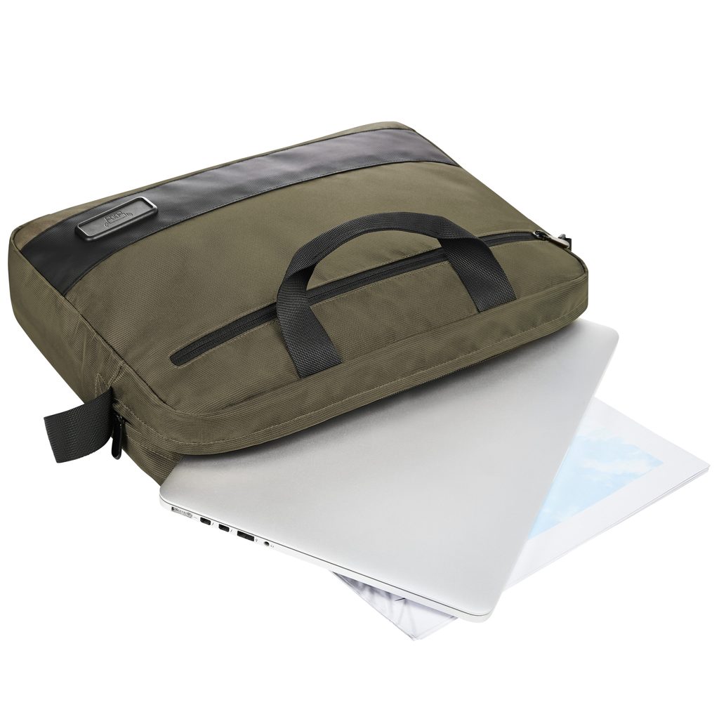 Diese stilvolle und praktische Laptop-Tasche ist ein unverzichtbares Accessoire für den täglichen Arbeitsalltag. Sie bietet bequem Platz für einen 15-Zoll-Laptop und ist sowohl im Büro als auch unterwegs eine Bereicherung. Sie verbindet Funktionalität mit modernem Design. Das große Hauptfach mit Zwei-Wege-Reißverschluss ermöglicht einen einfachen Zugang zum Laptop, während das gepolsterte Fach maximalen Schutz bietet. Für die Organisation Ihrer Sachen sorgen klare Fächer und Stiftschlaufen. Zwei große Reißverschlusstaschen, eine vorn und eine hinten, bieten genügend Platz für alle Ihre Essentials. Der längenverstellbare Schulterriemen ermöglicht ein komfortables Tragen über der Schulter und die kürzeren Griffe mit Druckknopf-Manschette bieten die Möglichkeit, sie in der Hand zu tragen.