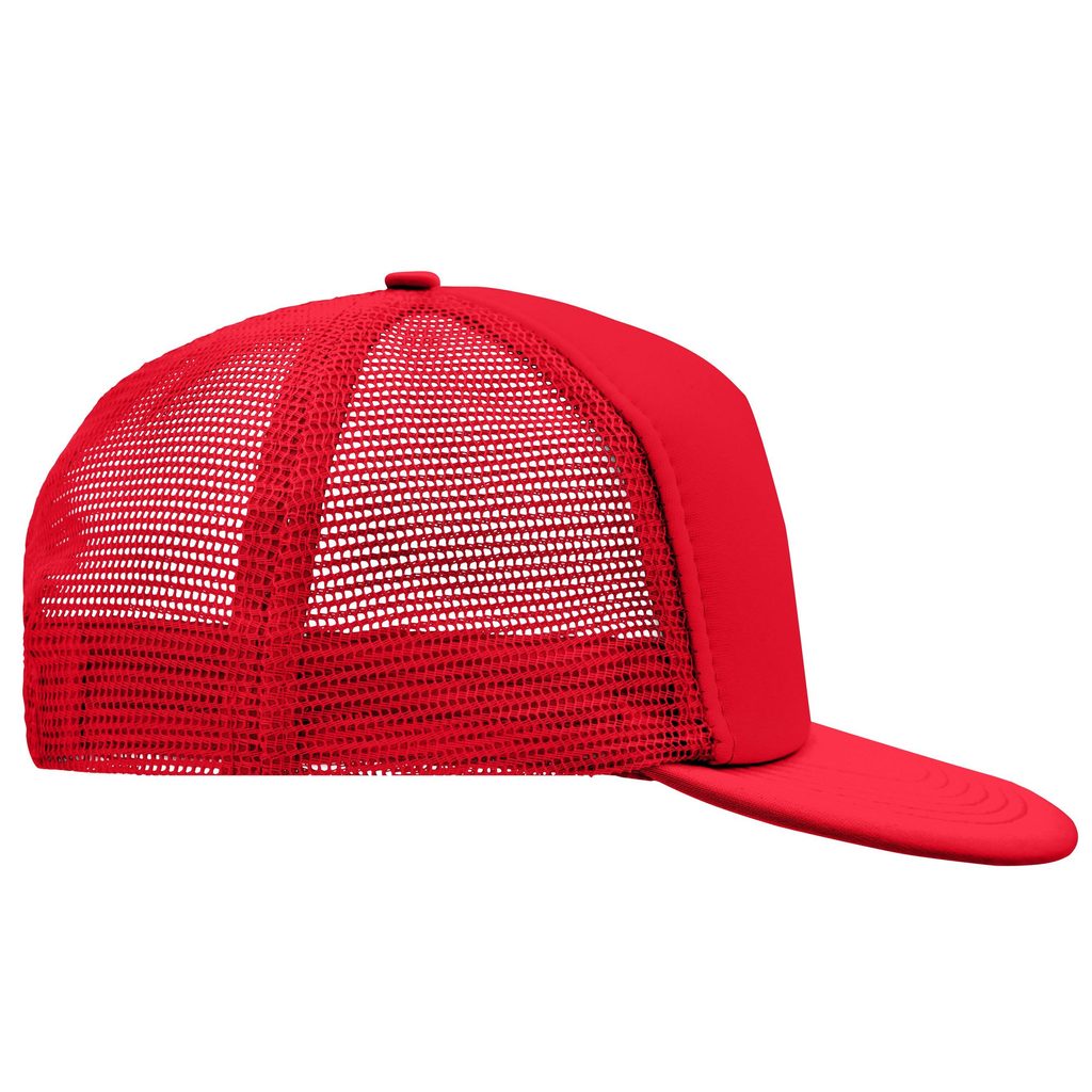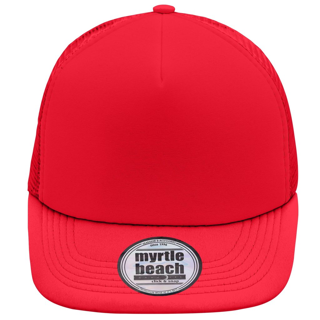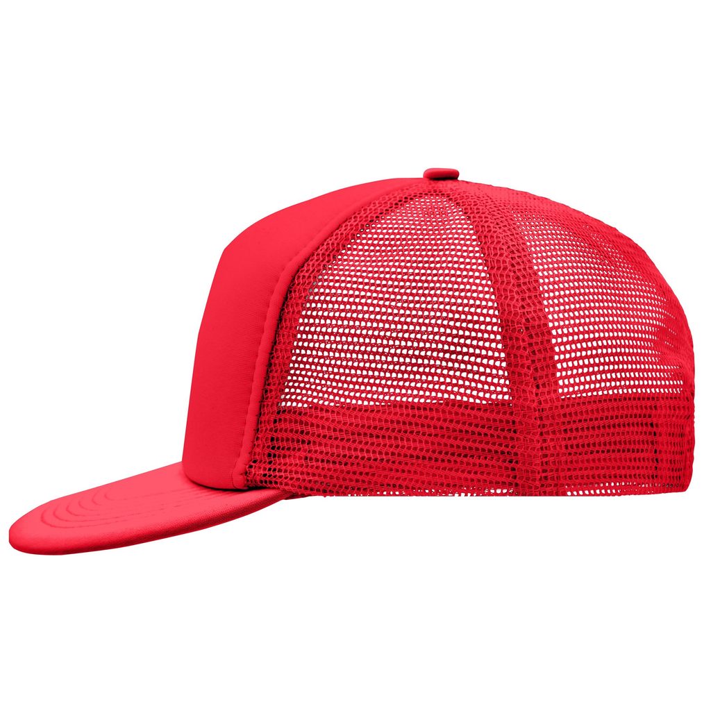 5-Panel Trucker-Kappe mit flachem Schirm, der mit 6 dekorativen Nähten versehen ist. Das Etikett ist abziehbar. Die Kappe hat einen weichen Vorderteil, der Rest besteht aus Netzmaterial. Gepolstertes Baumwoll-Schweißband. Kunststoffverschluss zur Größenanpassung. Material 100% Polyester. Die Kappe…