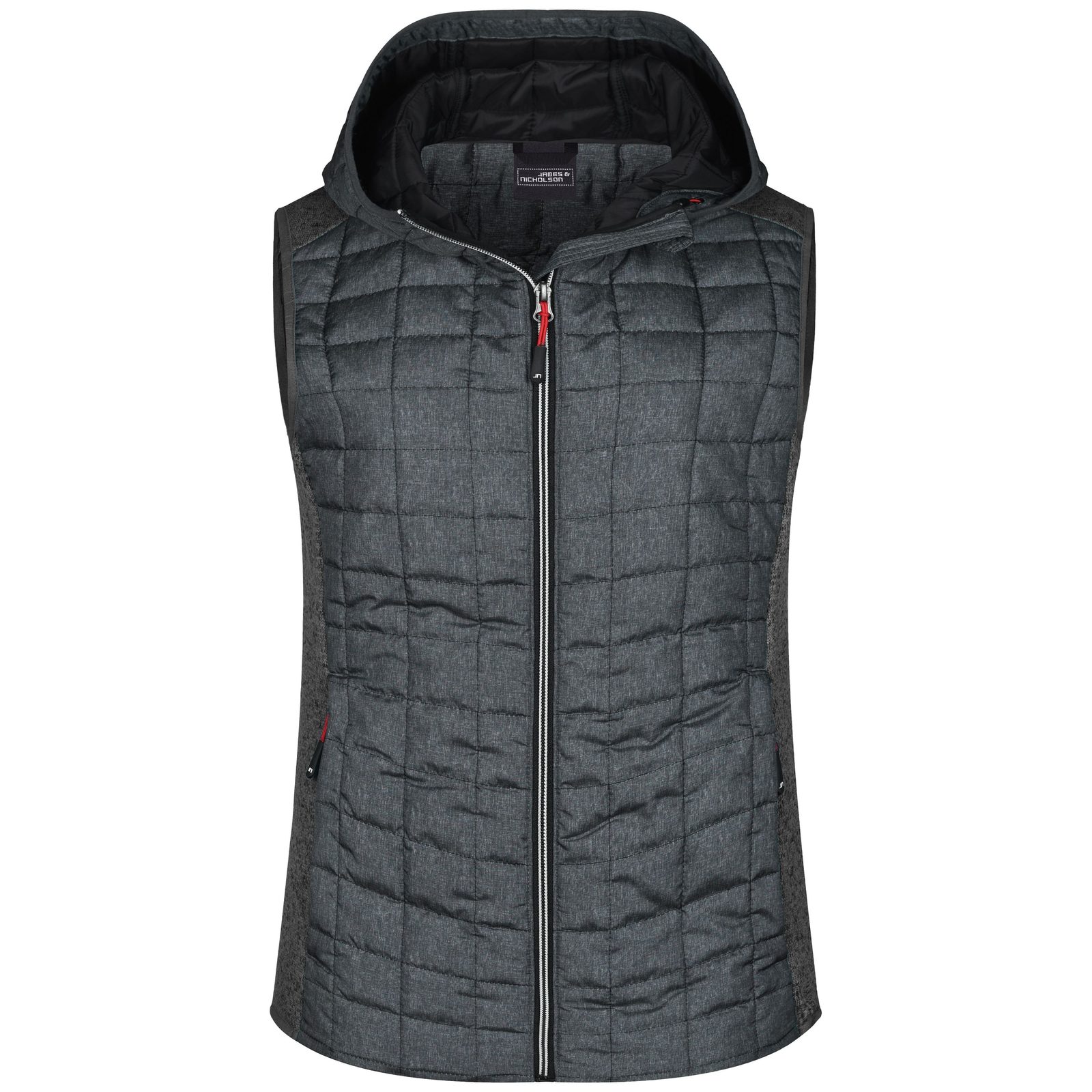 Diese attraktive Damenweste mit Kapuze besticht durch trendige Materialien und melierte Ausführung. Die Vorderseite, Rückseite und Kapuze sind mit einem quadratischen Muster gesteppt. Die Seitenpartien bestehen aus gestricktem Fleece. Dank dieser Materialien ist die Weste weich, pflegeleicht und…