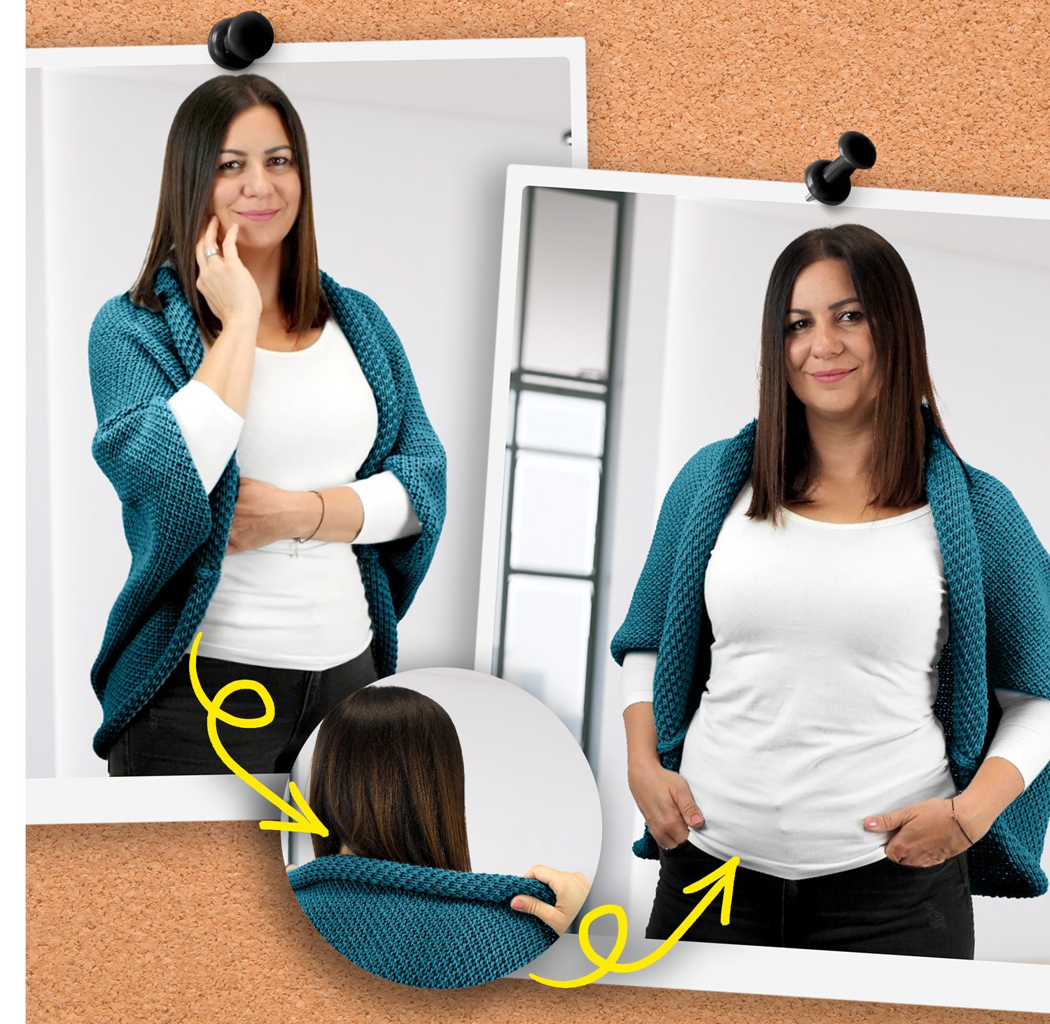 Der Strickcardigan überzeugt durch seine hochwertige Verarbeitung und den durchdachten Schnitt. Er hat eine Einheitsgröße, 3/4-Ärmel und eine variable Länge – diese lässt sich einfach anpassen, indem der Cardigan im Nacken leicht gerafft wird. So entsteht je nach Stimmung und Anlass immer ein neuer Look.