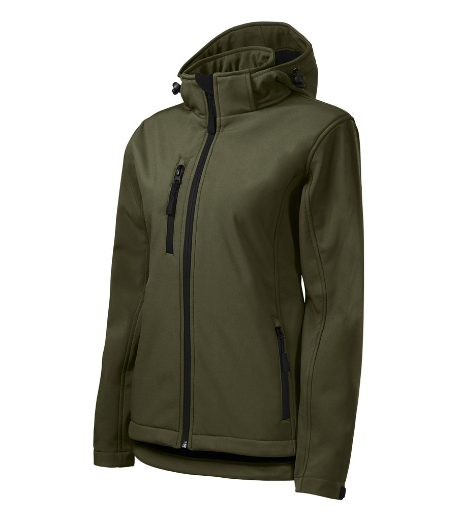 Atmungsaktive Damen Softshelljacke von Malfini. Hochwertig, regen- und windabweisend mit abnehmbarer Kapuze. 2 Vordertaschen und 1 Brusttasche mit Reißverschluss in Schwarz bei allen Farbvarianten. Ärmelsaum mit Klettverschluss. Eine geformte und verlängerte Rückseite sowie ein zusammenziehbares…