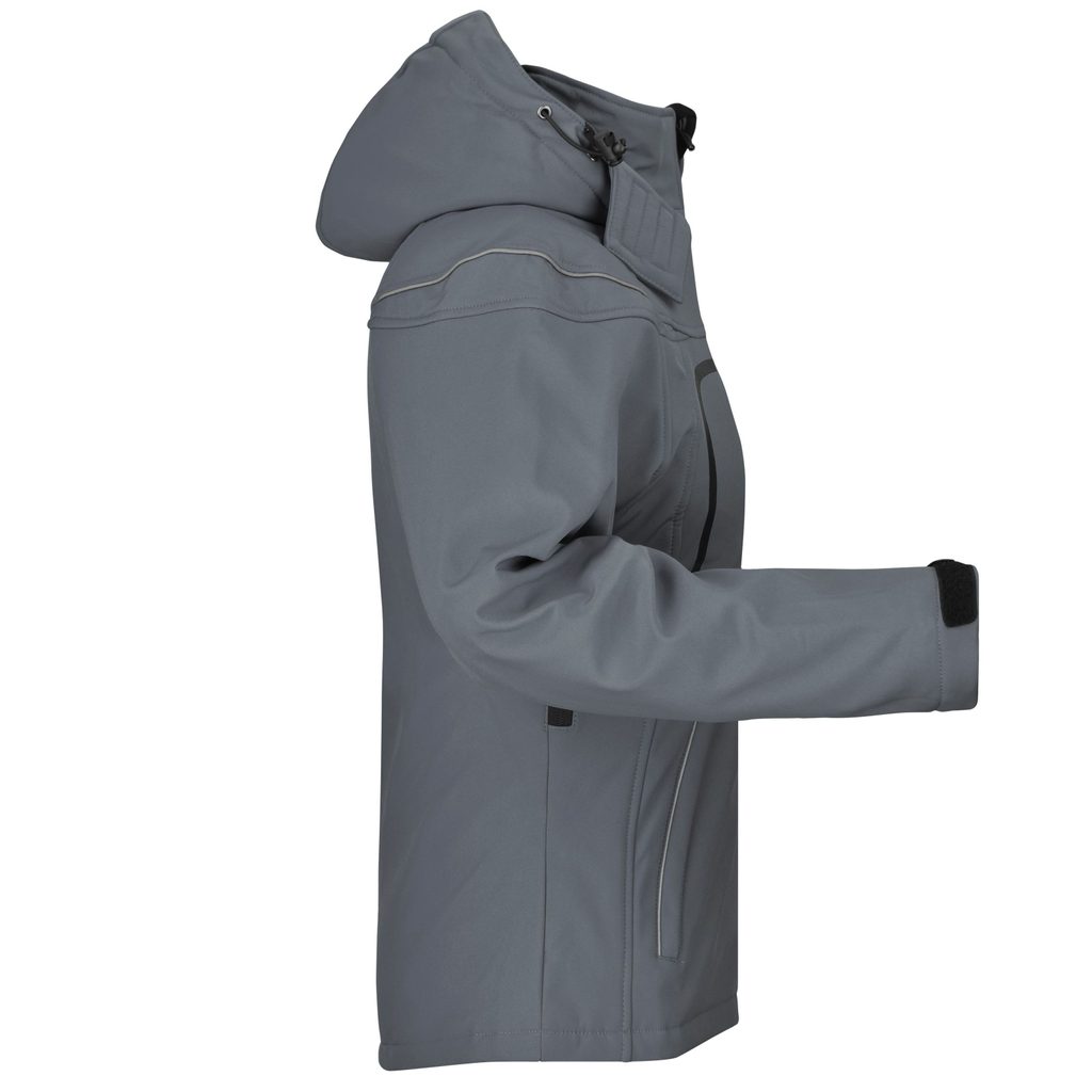 Winterliche Damen Softshelljacke im sportlichen Design. Für maximalen Komfort besteht die Jacke aus drei Schichten funktionaler Materialien mit TPU-Membran, ist wunderbar atmungsaktiv und wasserabweisend (5000 mm Wassersäule), abnehmbare Kapuze, Belüftung unter den Armen, reflektierende Elemente im…