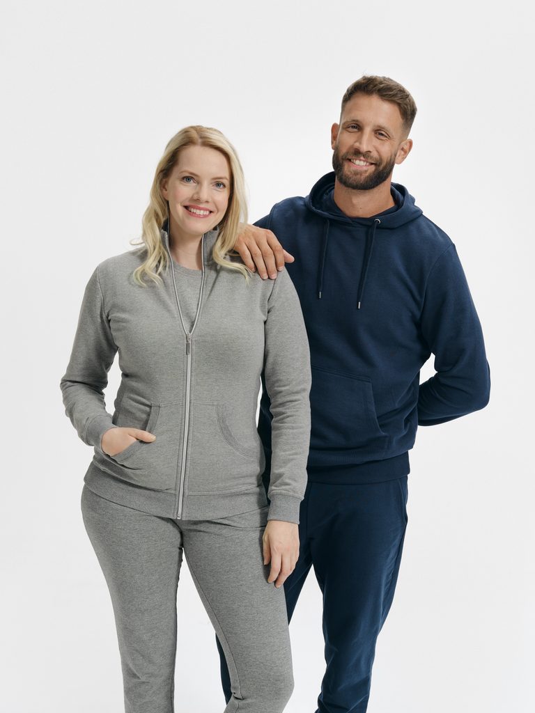 Damen Sweatshirt ohne Kapuze mit Reißverschluss. Stehkragen, Seitenteile, unterer Rand, Taschensäume und Ärmelmanschetten sind aus 2:2 Rippstrick mit 5 % Elastan gefertigt. Das Sweatshirt ist mit aufgesetzten Kängurutaschen versehen. Geeignet für Druck und Stickerei. Stoffgewicht 300 g/m2. Material…