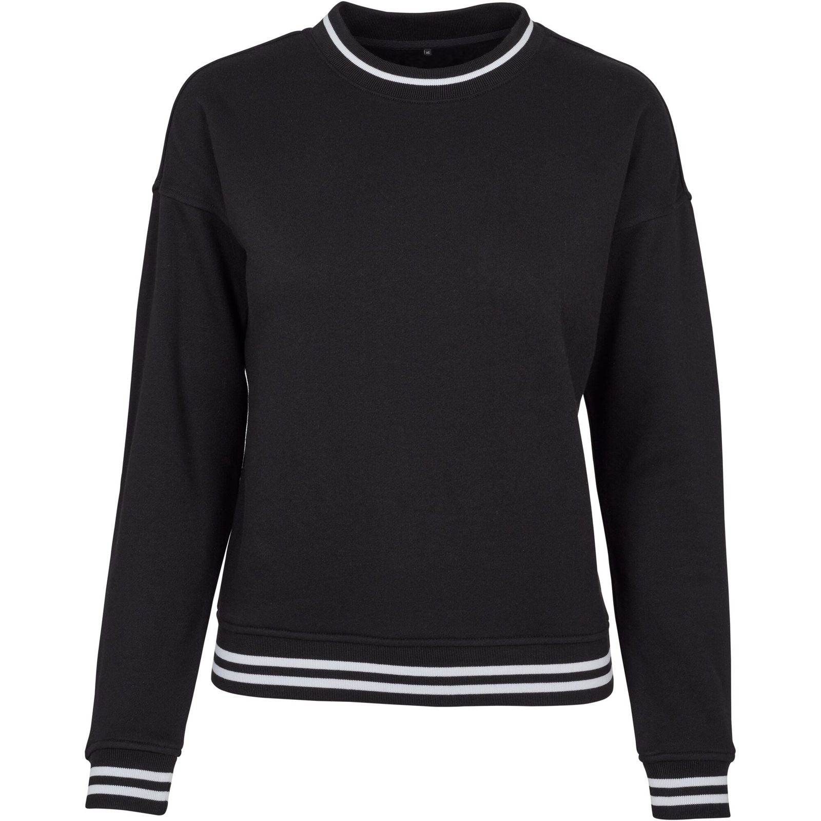 Damen-Sweatshirt zum Überziehen mit Streifen an den Bündchen Attraktives Damen-Sweatshirt zum Überziehen, verziert mit stilvollen gestreiften Manschetten. Diese befinden sich an den Ärmelenden, am unteren Saum, um den Ausschnitt und ergänzen perfekt das Gesamtbild des Sweatshirts. Es wird aus…