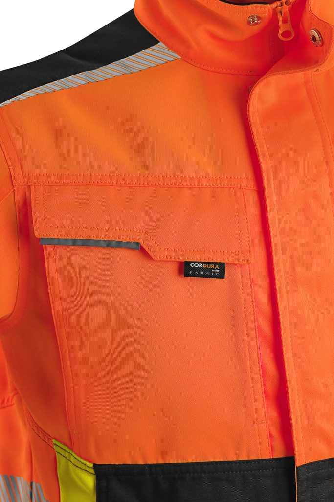Moderne Herren Warnschutz Bundjacke mit Reflexzubehör. Die Schultern der Jacke sind mit dem widerstandsfähigen CORDURA-Material verstärkt. Ärmel sind mit verstellbarem Klettverschluss ausgestattet. Verdeckter Reissverschluss, Klett- und Druckknöpfe. Praktisch ist die große Anzahl an Taschen -…